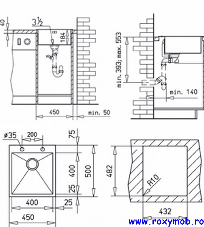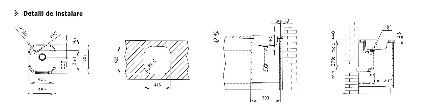 - dimensiune Drainer ( tava de scurgere separata ) = dim 385 x 28 mm, scurgere 1 1/2