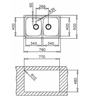 - dimensiune cuve : 480 x 400 / 148 x 300 mm