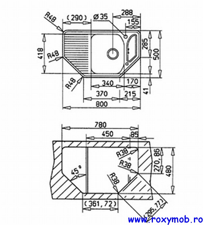 Chiuveta inox Pyramis Medusa Corner 1B 2D