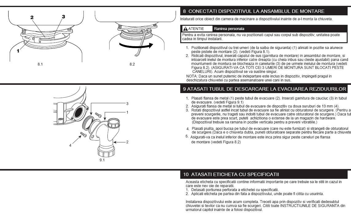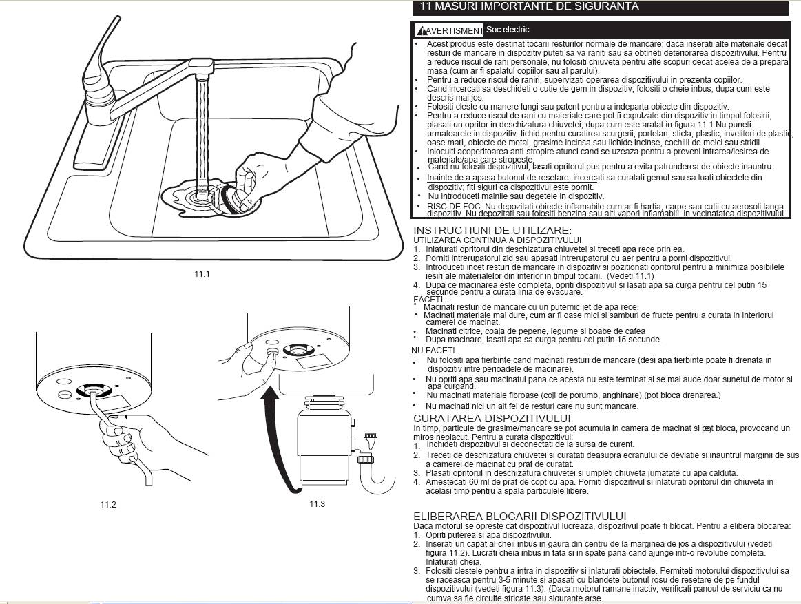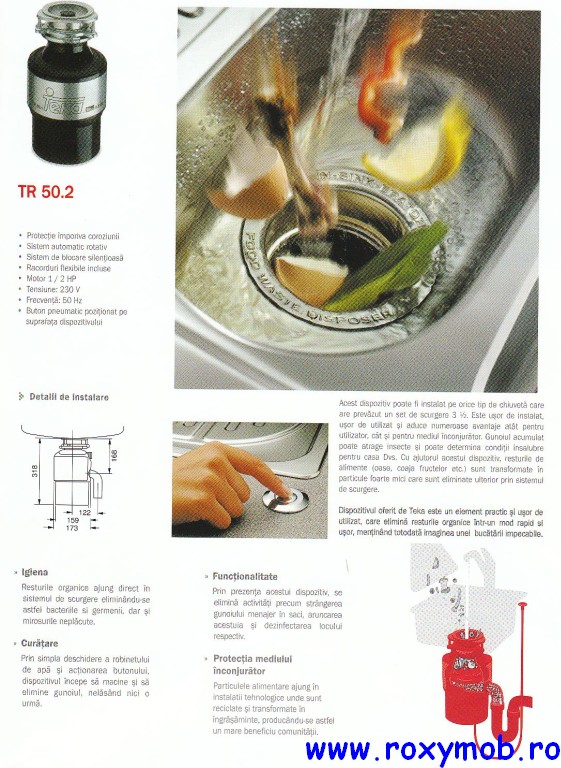 Chiuvete inox - dispozitiv pentru strangerea si tocarea resturilor